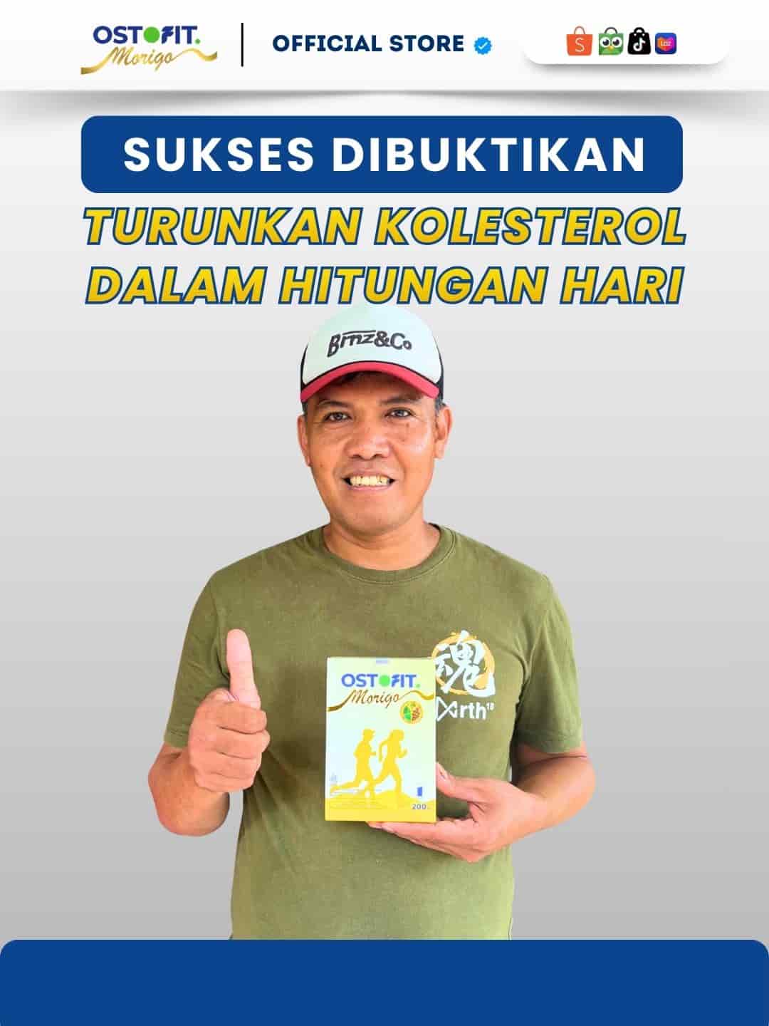 Akhirnya saya cobain minum susu Ostofit Morigo, Alhamdulillah Kolestrol dan Hipertensi saya berangsur membaik setelah rutin minum setiap pagi dan malam harinya. Sekarang tubuh saya berasa lebih ringan dan aktivitas pergi ke pasar saya pun menjadi normal kembali“
