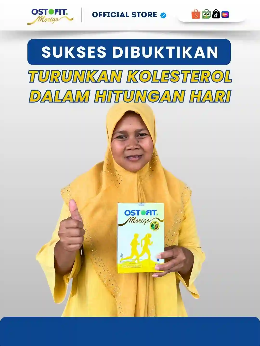 Akhirnya saya cobain minum susu Ostofit Morigo, Alhamdulillah Kolestrol dan Hipertensi saya berangsur membaik setelah rutin minum setiap pagi dan malam harinya. Sekarang tubuh saya berasa lebih ringan dan aktivitas pergi ke pasar saya pun menjadi normal kembali“