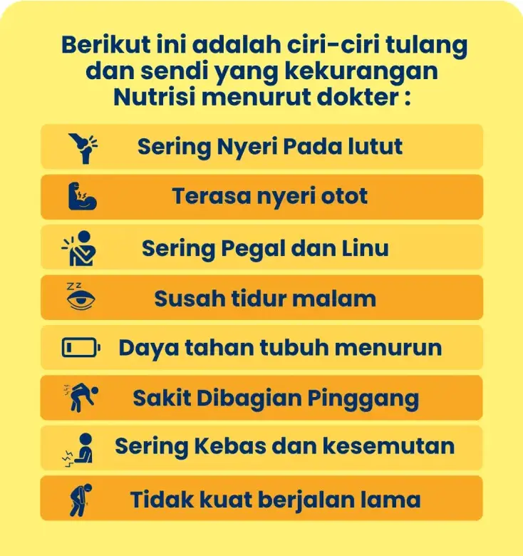 Penyakit diatas bisa saja terjadi jika anda sering mengabaikan nyeri sendi. Bisa jadi tulang dan sendi kamu kekurangan nutrisi !