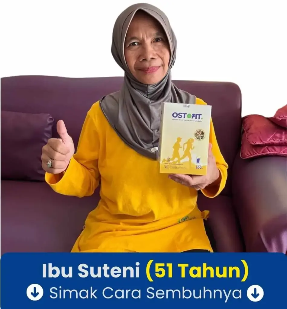 Sampe akhirnya cobain minum susu ostofit, Alhamdulillah nyeri lutut dan pengapuran saya mulai membaik setelah rutin minum setiap harinya. sekarang ibu bisa beraktivitas dengan bebas.”