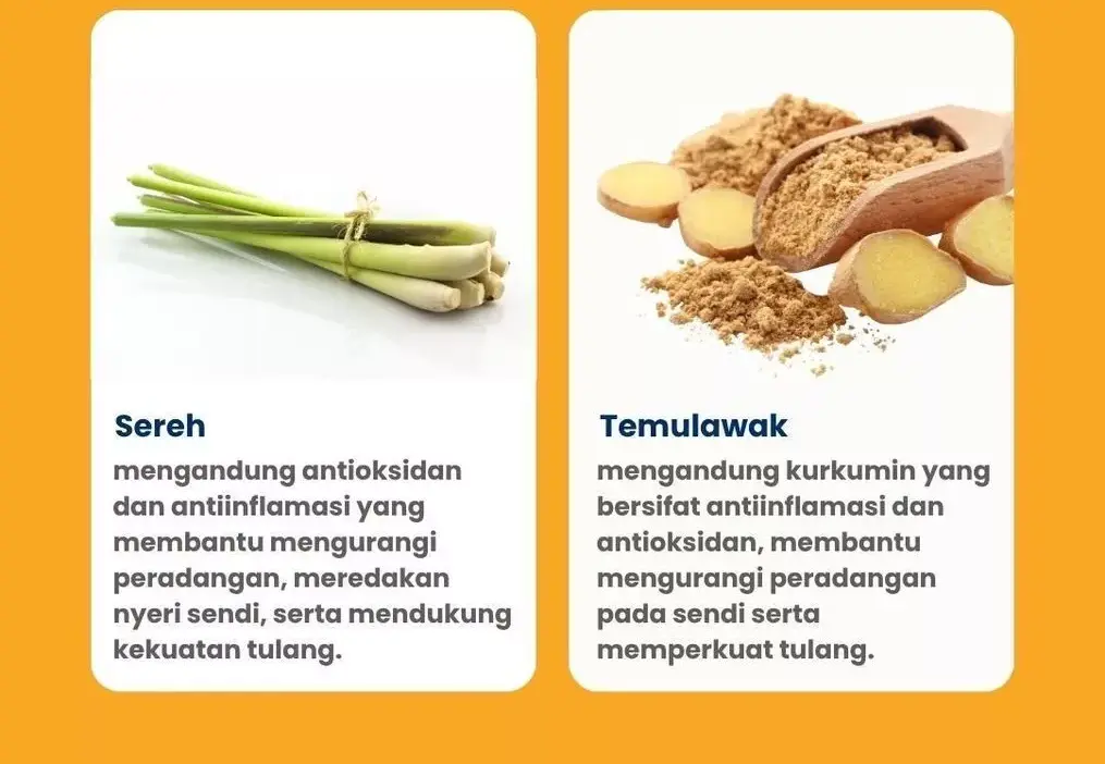Diperkaya ekstrak kunyit dan daun kelor, OSTOFIT Morigo membantu menurunkan kolesterol, mengurangi peradangan, serta menjaga daya tahan tubuh.