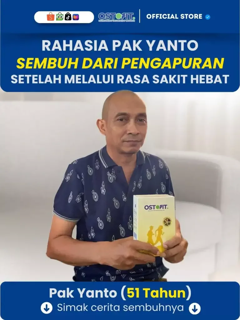 Akhirnya bapak coba Ostofit untuk bantu pulihkan sendi dari dalam. Alhamdulillah kurang dari sebulan, lutut terasa lebih ringan, Bapak sudah bisa jalan dan ibadah lagi tanpa kesakitan.”